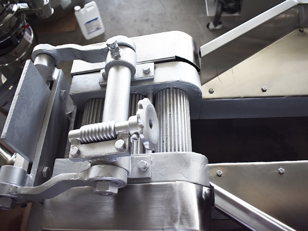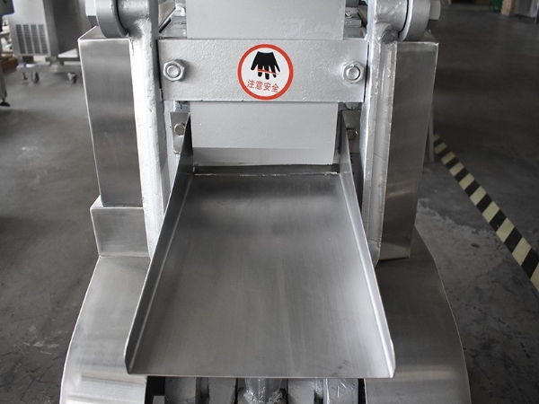 由電機(jī)、傳動(dòng)系統(tǒng)、臺面、輸送帶、切藥等部分組成。這種切藥機(jī)適應(yīng)性強(qiáng)、功率大,適膈切制長條形的根、根莖及全草類藥材。而球形、團(tuán)形藥材則不適宜,操作時(shí),將藥材堆放機(jī)器臺面上,啟動(dòng)機(jī)器,藥材經(jīng)輸送帶(為無聲鏈條組成)進(jìn)入床切片,片的厚薄由偏心調(diào)節(jié)系統(tǒng)進(jìn)行調(diào)節(jié),剁式切藥機(jī)可將藥材切成、段、節(jié)、咀、絲等形狀。剁式切藥機(jī)常與振蕩篩配合使用,使切制后的飲片及時(shí)篩選、分等。